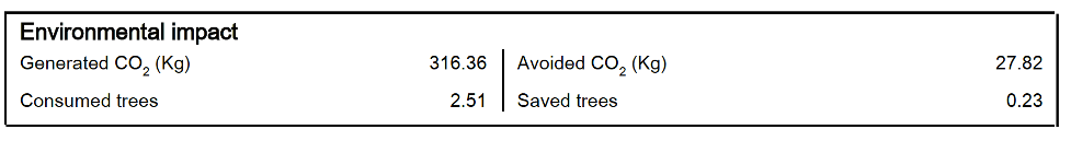 - Reporte de impacto ambiental: Co2, consumo y ahorro de arboles.